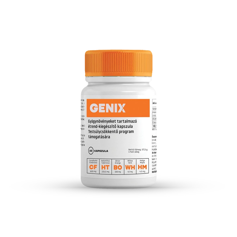 A GENIX összetevői a legfrissebb tudományos eredmények figyelembevételével lettek összeválogatva, hogy a fogyás többé ne csak vágyálom legyen. Testsúlycsökkentő hatása elsősorban az éhségérzet visszaszorításának és az emésztésre gyakorolt pozitív befolyásának köszönhető. Segíti a tápanyagok megfelelő szintű felszívódását, a többletbevitelt pedig gyorsabb távozásra bírja, így a narancsbőr is elkerülhető.